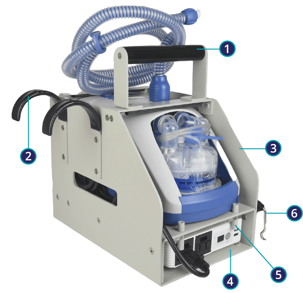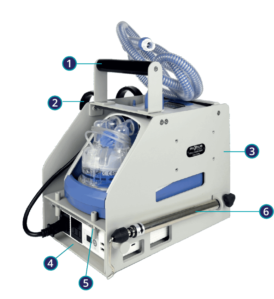 Now clinicians can provide powered, heated, and humidified high flow devices throughout the spectrum of care to assure no gaps in therapy during transitions in care environments. Regardless of location, Phyxius provides high flow on the go!