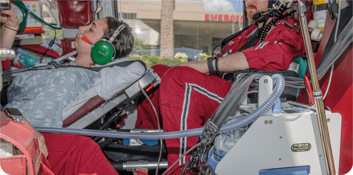 Regardless of your environment, hospital, EMS, or ground and flight critical care, Phyxius facilitates easy movement of nasal high flow in your specialized care environment.